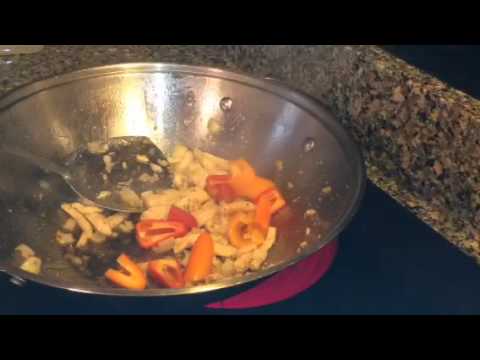Stainless Steel Wok - Wok Stainless - Chicken lo mein cooked with sweet peppers in a stainless steel wok.